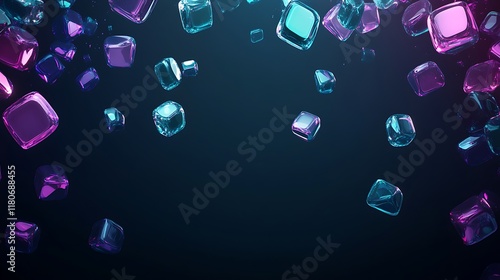 Glowing Cubes Falling Against Dark Background