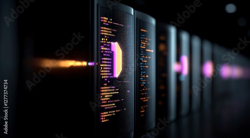 Glowing Data Transfer Server Room Network Digital Code IT Infrastructure Technology