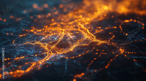 "Glowing Data Visualization of Stock Market Trends in Orange and Blue"