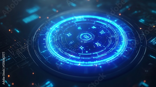 Glowing digital astrological clock interface with zodiac symbols on a circuit board background
