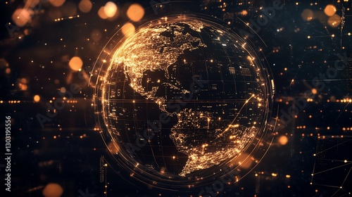 Glowing digital earth with network connections.