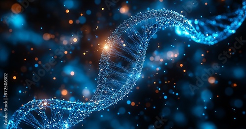 Glowing DNA Strand in a Blue and Orange Abstract Space