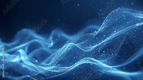 Glowing dots forming waves on a dark background. Abstraction, light, technology, graphics