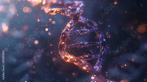 Glowing Double Helix DNA strand with sparkling particles for genetics and life backdrop