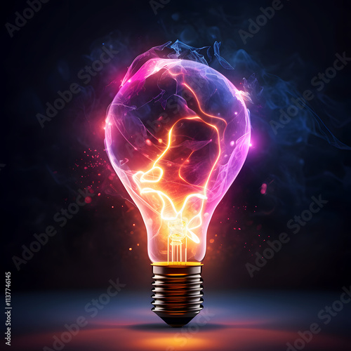 Glowing Electric Light Bulb with Neon Lights Futuristic Abstract Illustration for Marketing, Branding, Ads, Presentations, Social Media, Blogs, Innovation Campaigns, Digital Art
