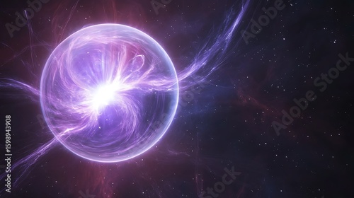 Glowing Energy Ball in Deep Space with Nebula and Stars