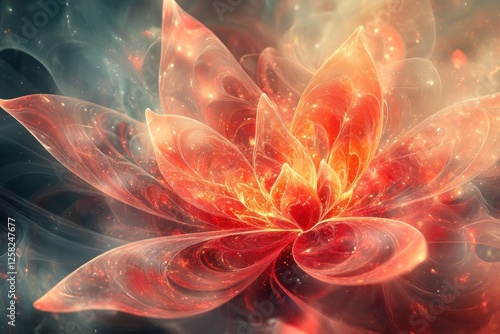 Glowing fractal flower art, cosmic dust, dark background, design element