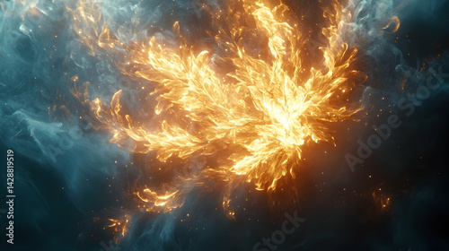 Glowing fractal nebula in orange and blue hues ethereal sparks amidst cosmic dust