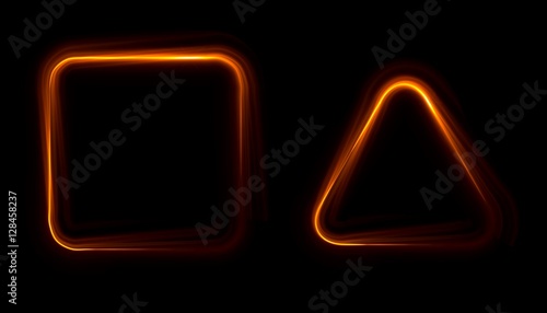 Glowing frames black background. Square glow borders. Sparkling geometric light banner. Luminous triangle light shape. Shining triangular forms. Neon sign. Bright sign with flares and sparkles. LED