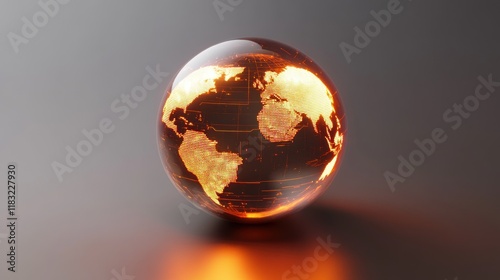 Glowing glass Earth globe on dark background, global network concept