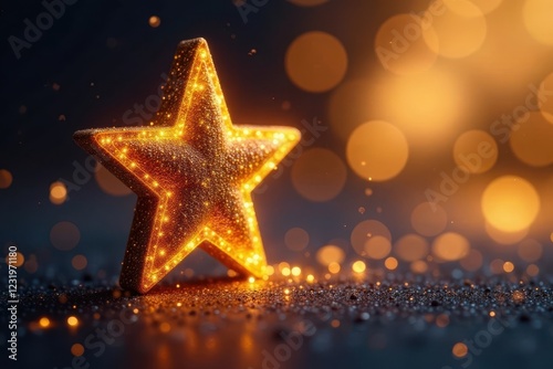 Glowing gold star, sparkling dust, festive backdrop, gleam, glitter