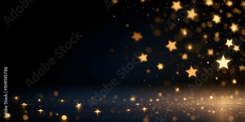 Glowing golden bokeh lights against a dark background, with a few scattered stars visible.