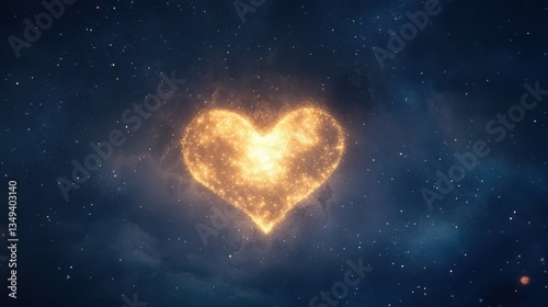 Glowing Golden Heart in a Starry Night Sky