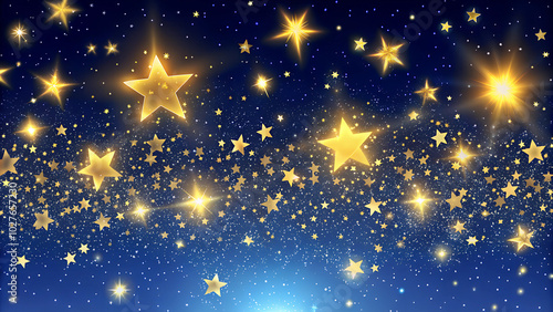Glowing golden stars scattered against a deep blue night sky creating a festive atmosphere