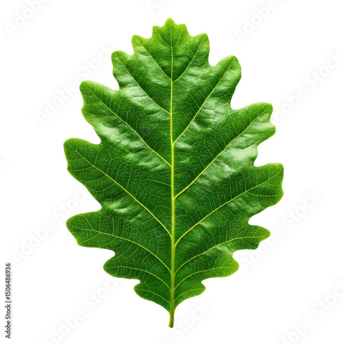 Glowing Green Oak Leaf Isolated on Black Background