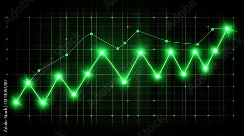 Glowing green stock chart showing uptrend on a black background used for investments and data visualization
