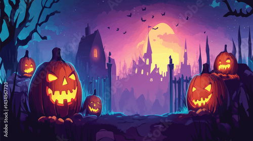 Glowing Halloween Pumpkins in a Scary Scene.