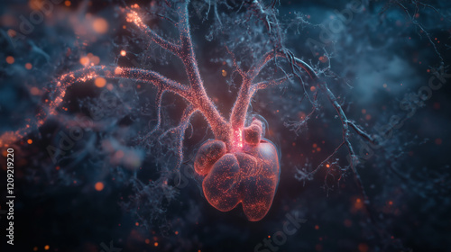 Glowing heart and intricate network