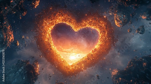 Glowing Heart Shaped Galaxy Swirling with Cosmic Stars and Nebulae in Boundless Space