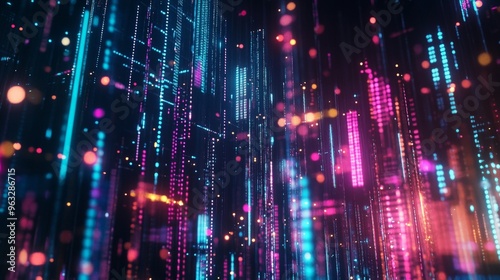 Glowing holographic charts emerging from a darkened screen