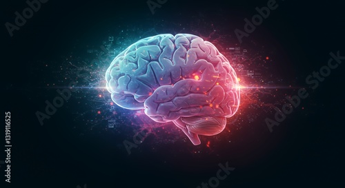 Glowing Human Brain Digital Illustration, Abstract Neural Network Concept