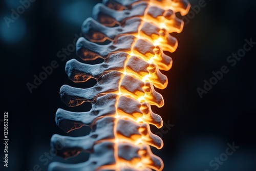 Glowing Human Spine, Detailed Anatomy Illustration