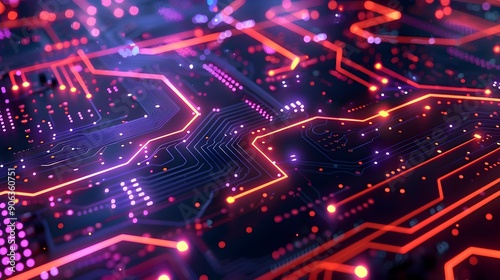 Glowing Intricate Circuit Board with Neon Lights Futuristic Cyber Digital Abstract Tech Background