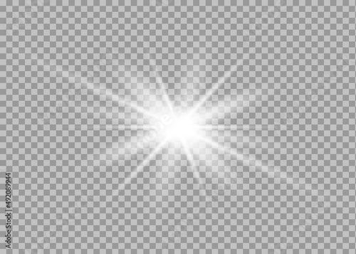 Glowing isolated white transparent light effect, glare, explosion, glitter, line, sun flare, sparks from the sun and stars
