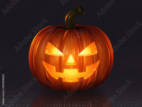 Glowing jack-o'-lantern pumpkin for Halloween on blackbackground