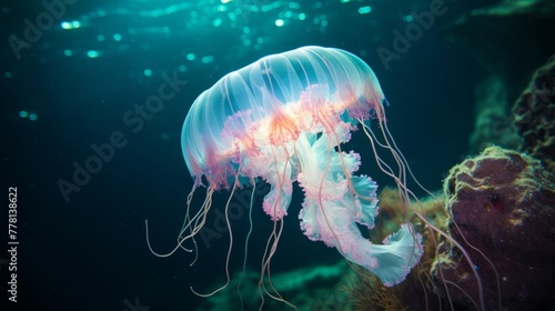 Glowing jellyfish in an underwater cave