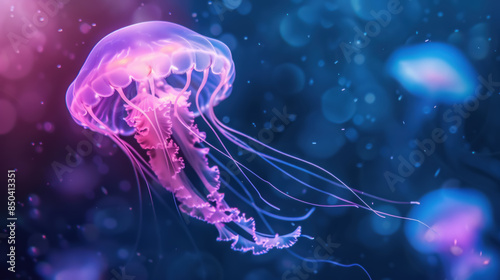 Glowing Jellyfish in Deep Sea, Realistic Free Space Environment