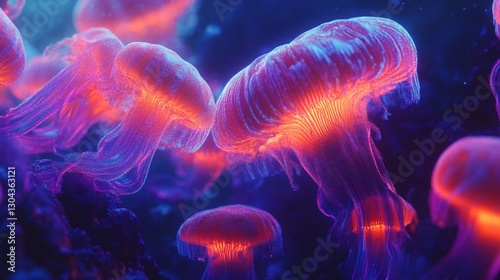 Glowing jellyfish underwater, ocean reef, bioluminescent, digital art, fantasy background