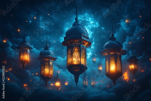 Glowing Lanterns Floating Beneath a Starry Night Sky