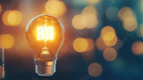 glowing LED light bulb shines brightly against blurred background, creating warm and inviting atmosphere. soft bokeh effect enhances visual appeal