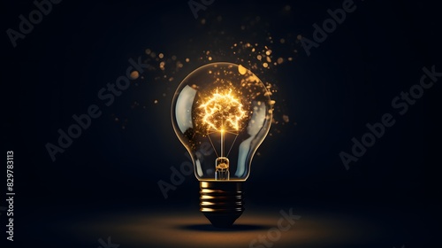 Glowing light bulb in the dark background. Innovation concept. Generative AI.