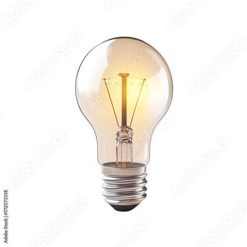 Glowing Light Bulb on White Background for Illumination Concepts