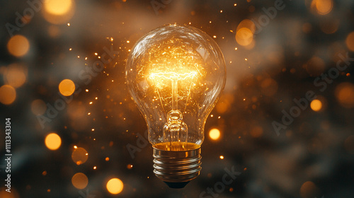glowing light bulb shaped like a rocket launches upward symbolizing innovation creativity business growth success and forward thinking set against a vibrant gradient background