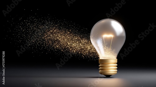 Glowing Light Bulb with Sparkling Effects Emerging from Base Created in Dark Background