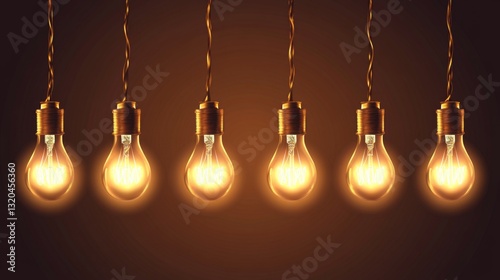 Glowing light bulbs hanging in a row - warm illumination for interior decoration or energy concept
