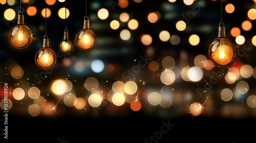 Glowing light bulbs with blurred lights in the background
