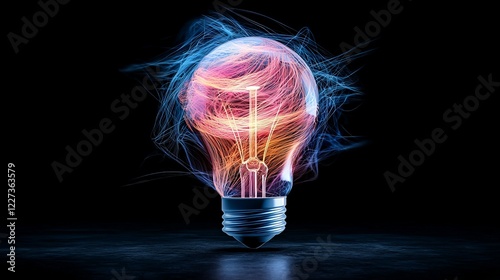 Glowing Lightbulb Design with Thread-like Elements and Colorful Glow