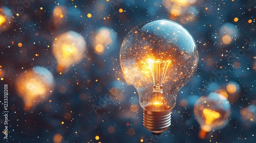 Glowing lightbulb, ideas, innovation, sparks, dark background, website banner