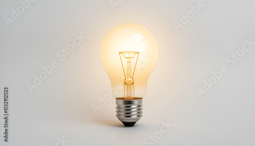 Glowing lightbulb shines brightly against a soft background, representing innovation, ideas, and energy efficiency with warm illumination.