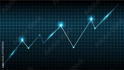 Glowing line graph on grid background shows upward trend, symbolizing growth and success