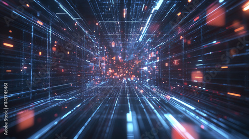 Glowing lines and geometric shapes create futuristic perspective