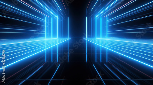 Glowing Lines in the Neon Tunnel.Generative Ai
