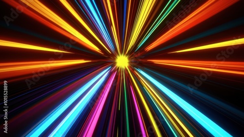 Glowing lines radiating outward in a fan shape, with vibrant colors creating a sense of movement and energy.