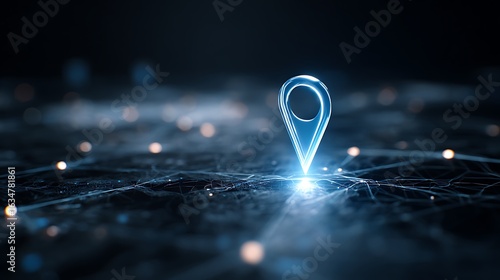 Glowing Location Pin: Futuristic Navigation Concept for Digital Maps and GPS Technology