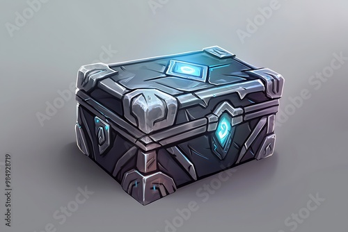 Glowing Magic Chest with Blue Gemstone, Fantasy Game Asset Illustration