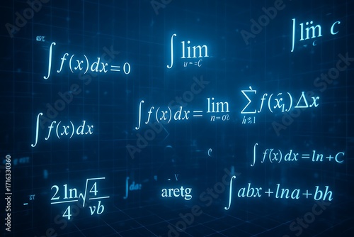 Glowing Mathematical Formulas and Equations on Futuristic Digital Blue Technology Background.